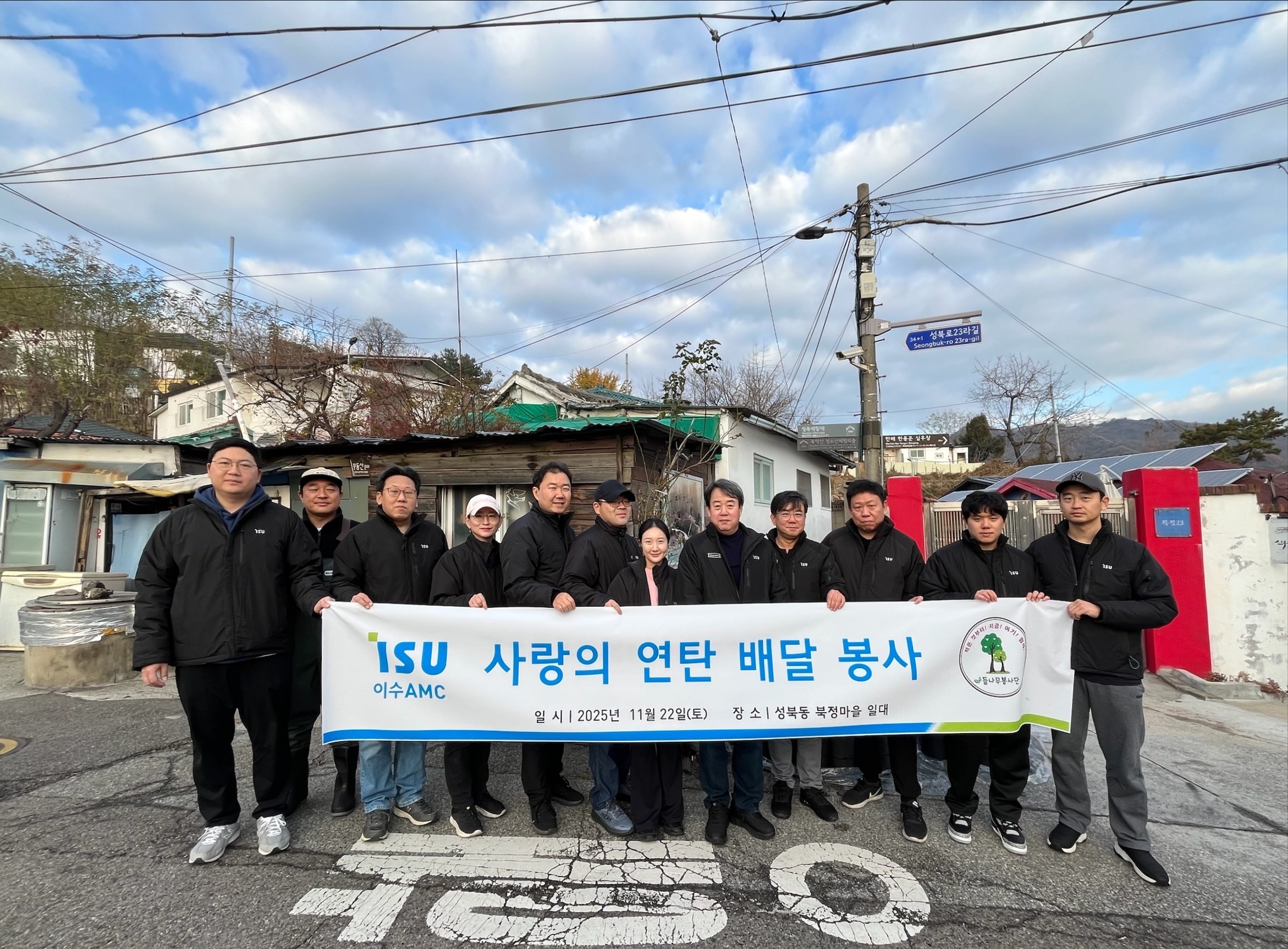 이수AMC는 11월 22일 임직원들과 들나무봉사단이 함께 성북동 북정마을에 취약계층 및 홀로어르신 가정에 2,500장의 연탄을 직접 배달했다.
